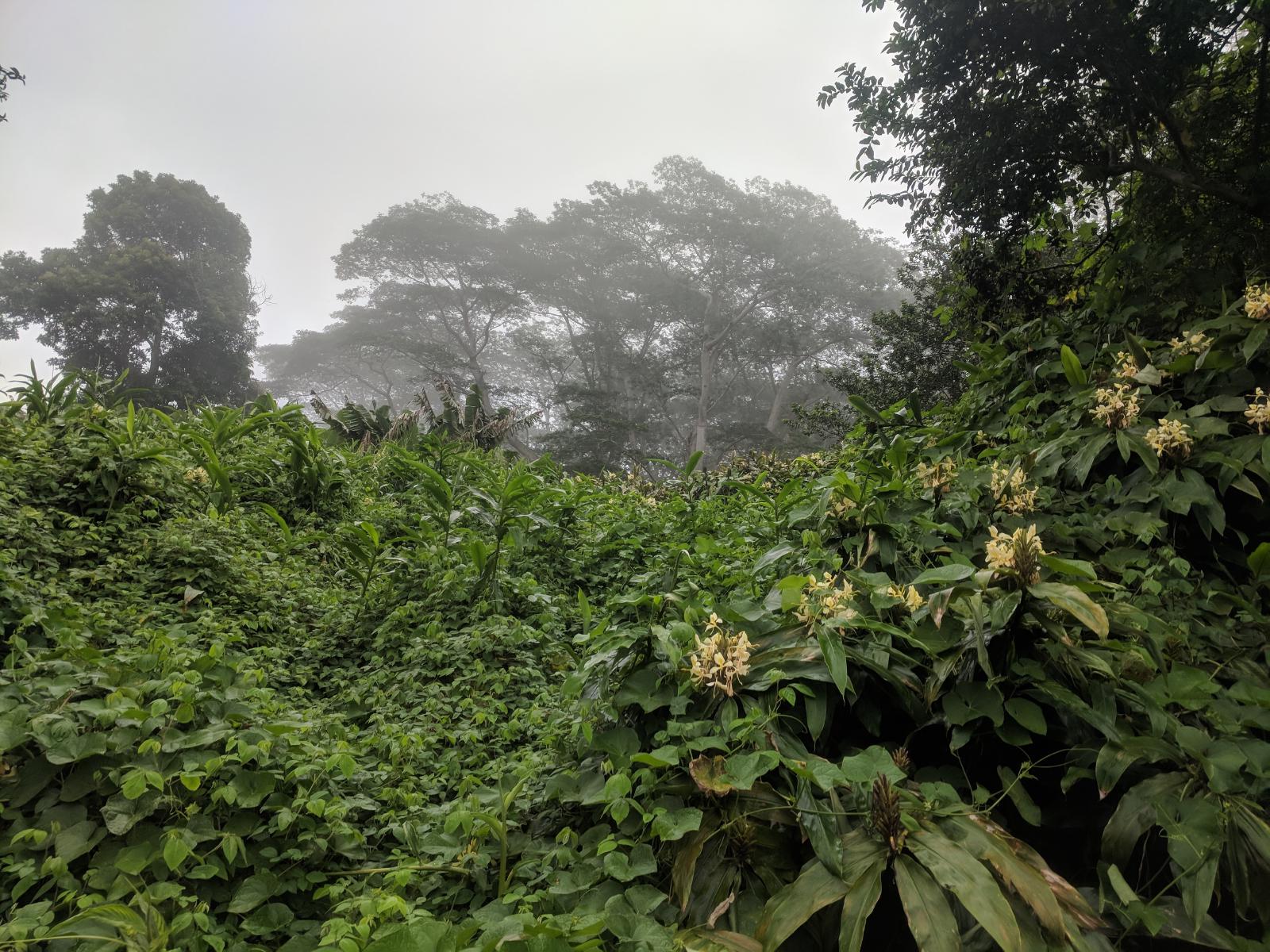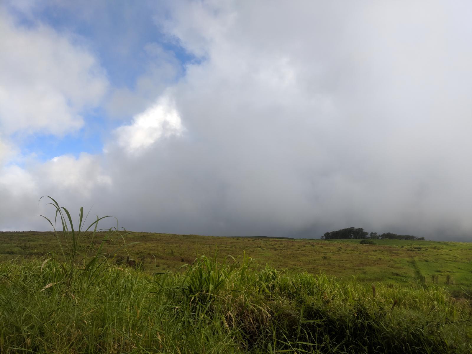 The bottom section of the road is paved, but is nevertheless “4wd only” due to its steep grade. The pavement fades within the first mile, giving way to gravel and finally muddy two-track as it levels out. The lower portions are flanked by Guava trees, bathing the area in their rich, sweet aroma when fruiting (a divine fragrance far more appealing than the fruits’ flavor). Cows grazing among the trees might be spooked by a runner passing through.