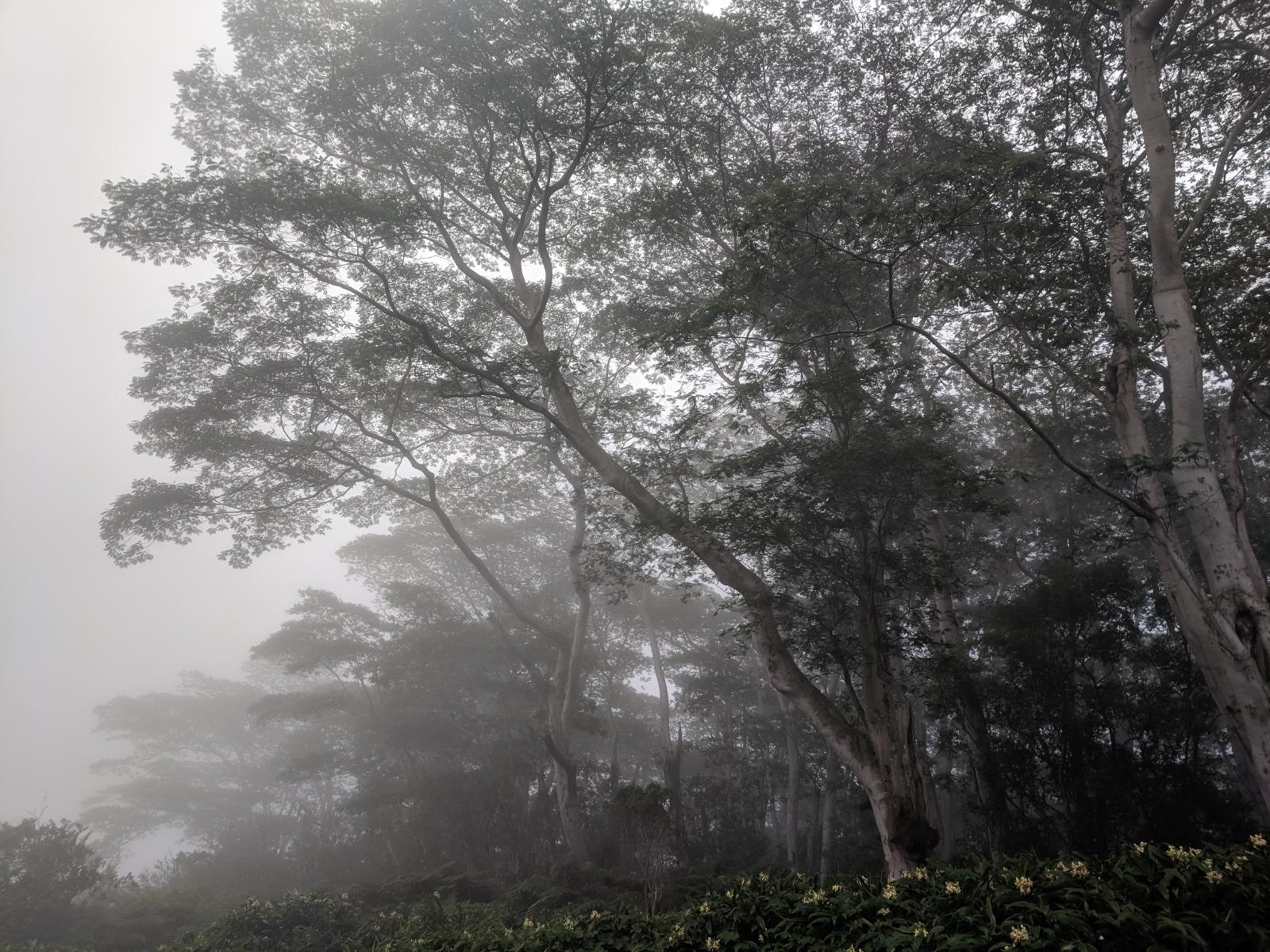 The Hao Springs Road is a small one-lane road that is one of the few public routes accessing the Ka’u Forest Preserve (some others being the Waterfall Road and Mountain House Road). It’s given the name “Hao Springs Road” on Google Maps, but there is no signage to mark it, other than the large “Whale’s Tail” sign for the business by that name near its start. It ascends 1500 steep feet above the small town of Waiohinu before skirting the perimeter of a large ranch, finally joining the Mountain House Road to plunge into the forest.