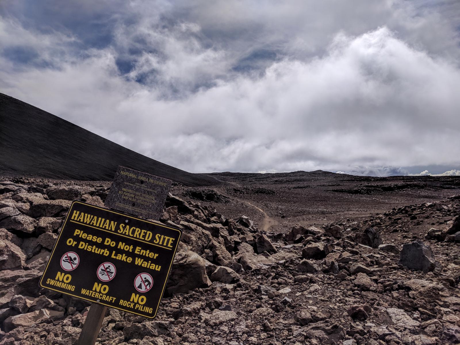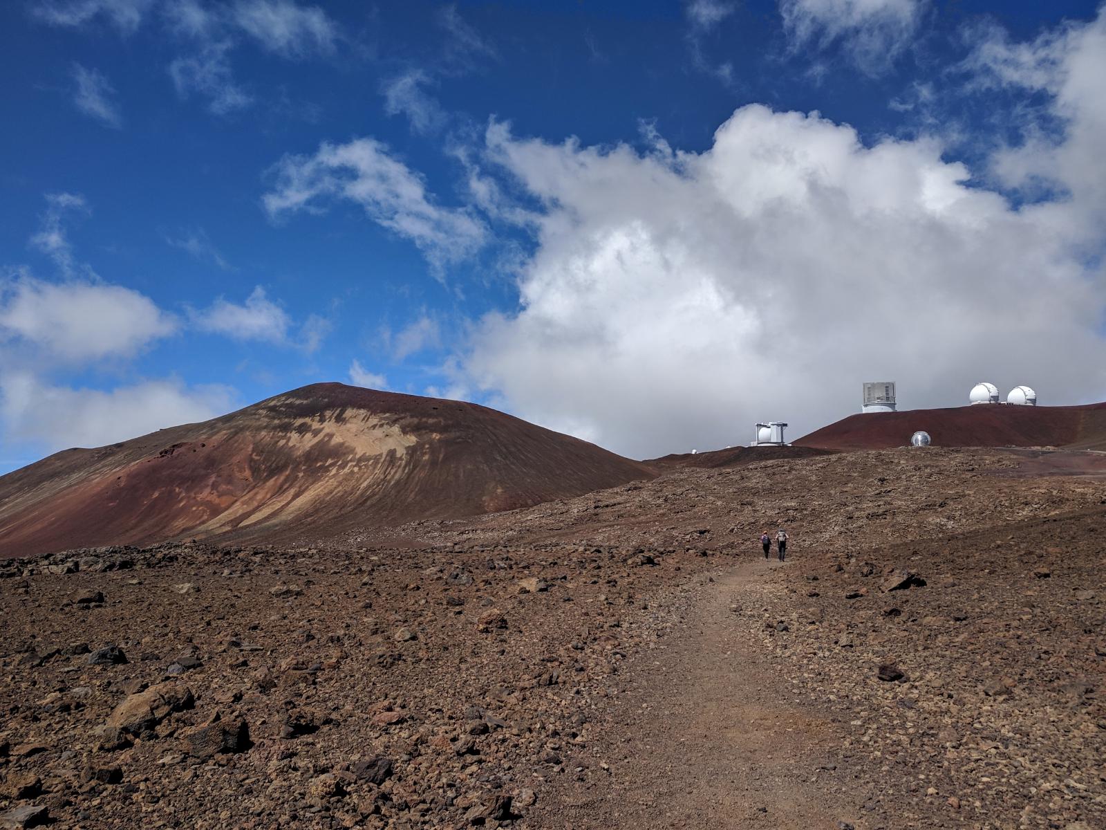 The summit itself is considered sacred by native Hawaiians; they request that you not hike the final quarter mile of trail to the true summit. Out of respect we opted to stick to the adjacent false summit on which the observatories are built, which is only a few vertical feet lower. The observatories themselves are astonishingly large and shiny, sticking out like alien spaceships protruding from the moonscape.