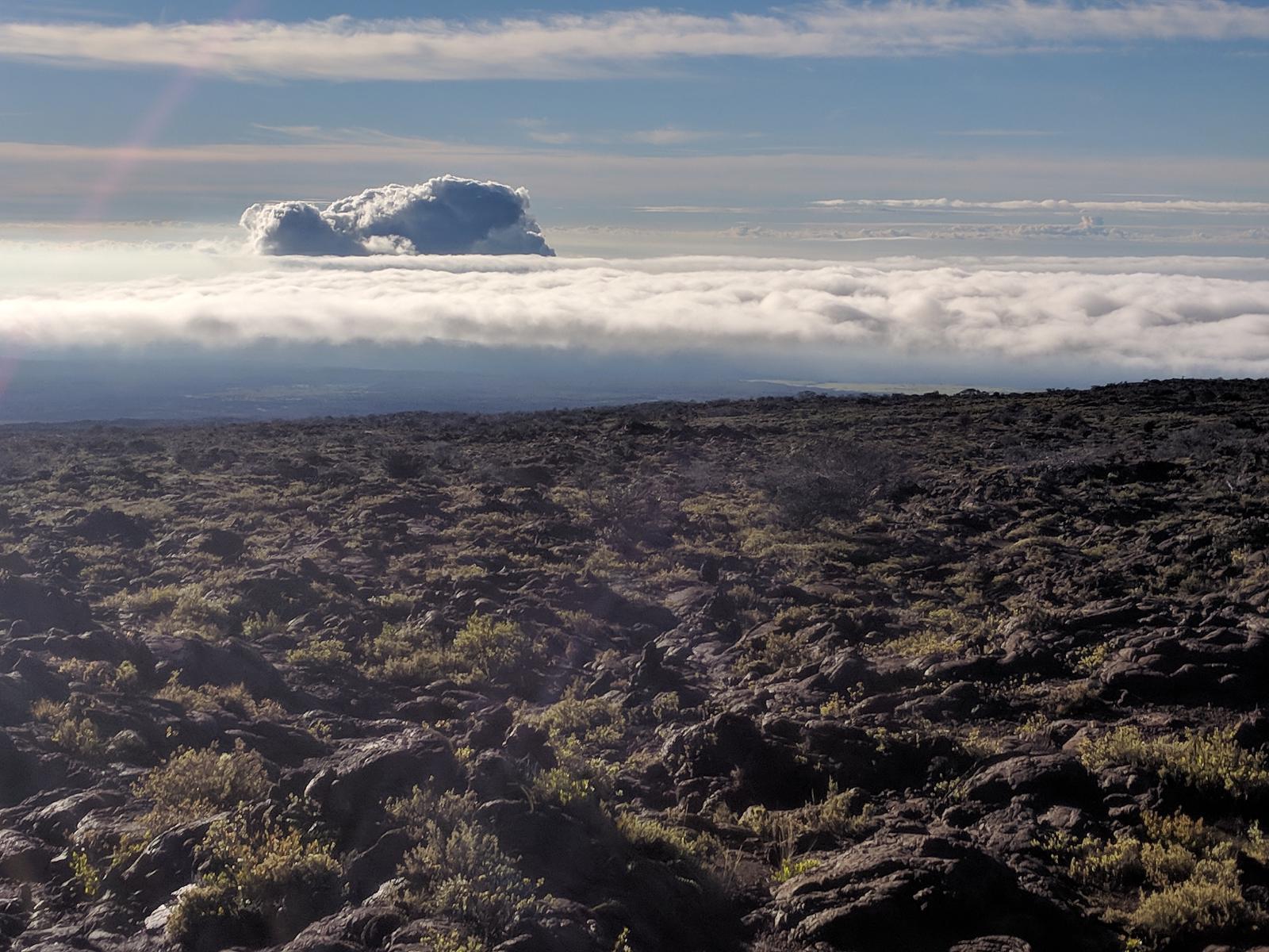 As we descended below 9000’ or so, we started getting some thunder with a couple of close lightning strikes. A challenge with a shield volcano is that altitude decreases slowly. In the Rocky Mountains, it’s easy to shed a couple thousand feet in a hurry. But on Mauna Loa, the gradual slope means that could require many miles of travel. We hurried back to the car as quickly as we could.