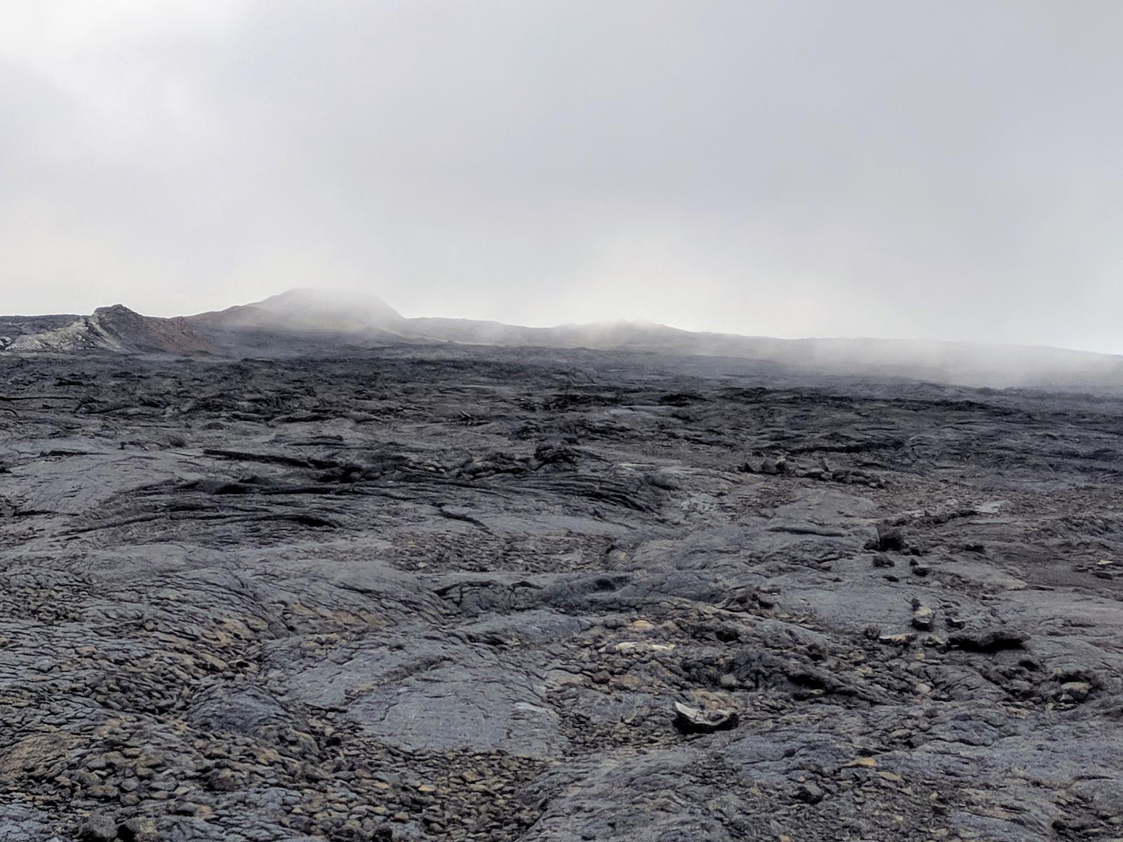 About 2 miles below the Caldera, I met Laura and she turned around as well. She was suffering a bit from some mild altitude symptoms, and on top of that, she didn’t have the benefit of a GPS watch with the route for reference, so we stuck together as the fog built up and visibility dropped. We were still able to see the cairns without difficulty, but could see how a thicker fog could have made navigation quite challenging. Once we’d descended enough that the altitude sickness risk seemed minimized, I pulled ahead again.